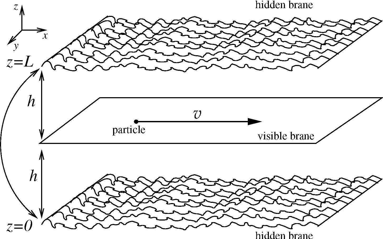 four-dimensional brane inside a higher-dimensional space, called the bulk. (See figure